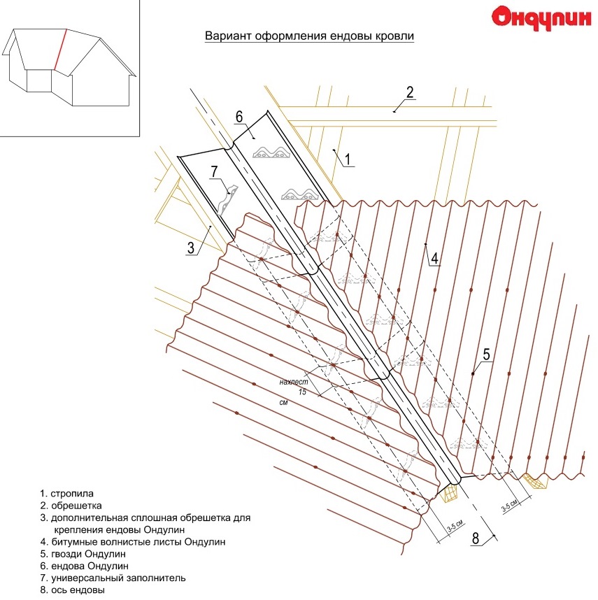 Предназначена для оформления ендов крыши (ендова – линия стыка двух скатов, образующих внутренний наклонный угол), а также для оформления бокового стыка кровли с вертикальной стеной.